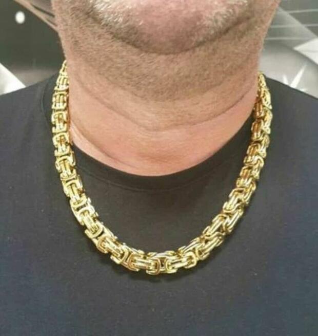 Mam do sprzedania piękny łańcuszek męski splot królewski wykonany ze stali chirurgicznej galwanizowany w kolorze złotym ...