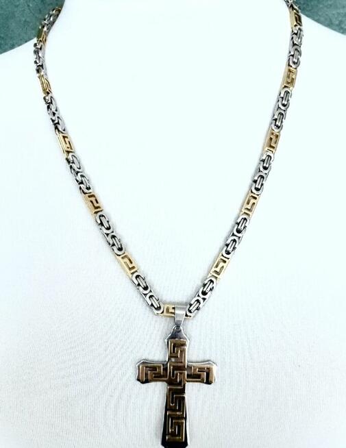Mam do sprzedania komplet męski łańcuszek bransoletka I krzyż splot królewski wykonany ze stali chirurgicznej ...